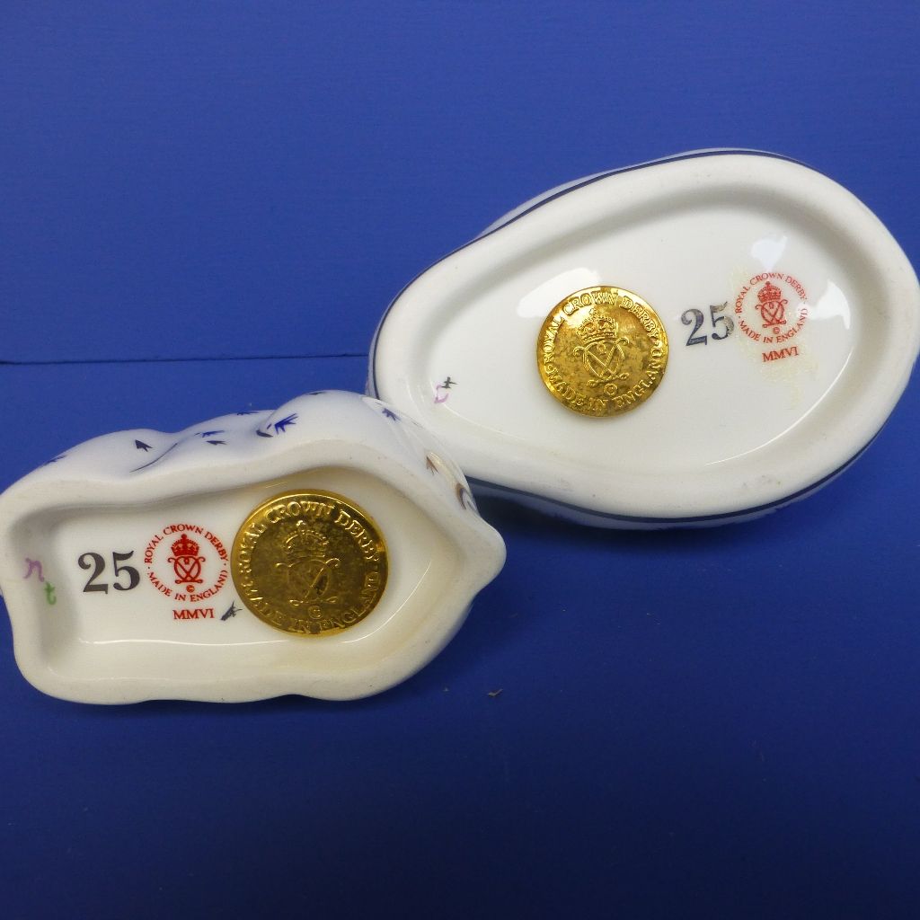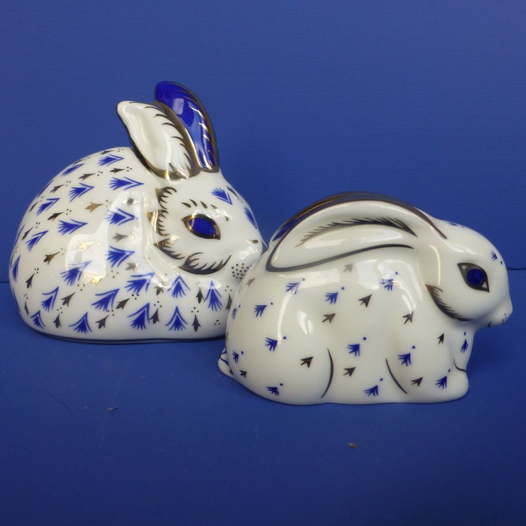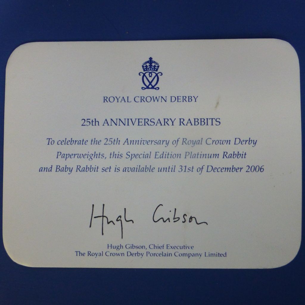 Royal Crown Derby Paperweights -Platinum Rabbit and Baby Rabbit