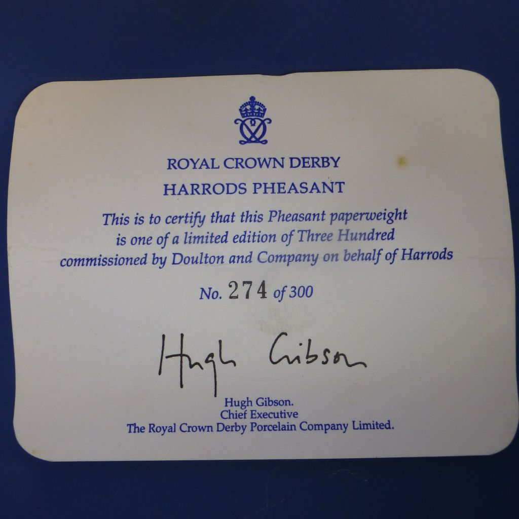 Royal Crown Derby Limited Edition Paperweight - Harrods Pheasant with gold stopper