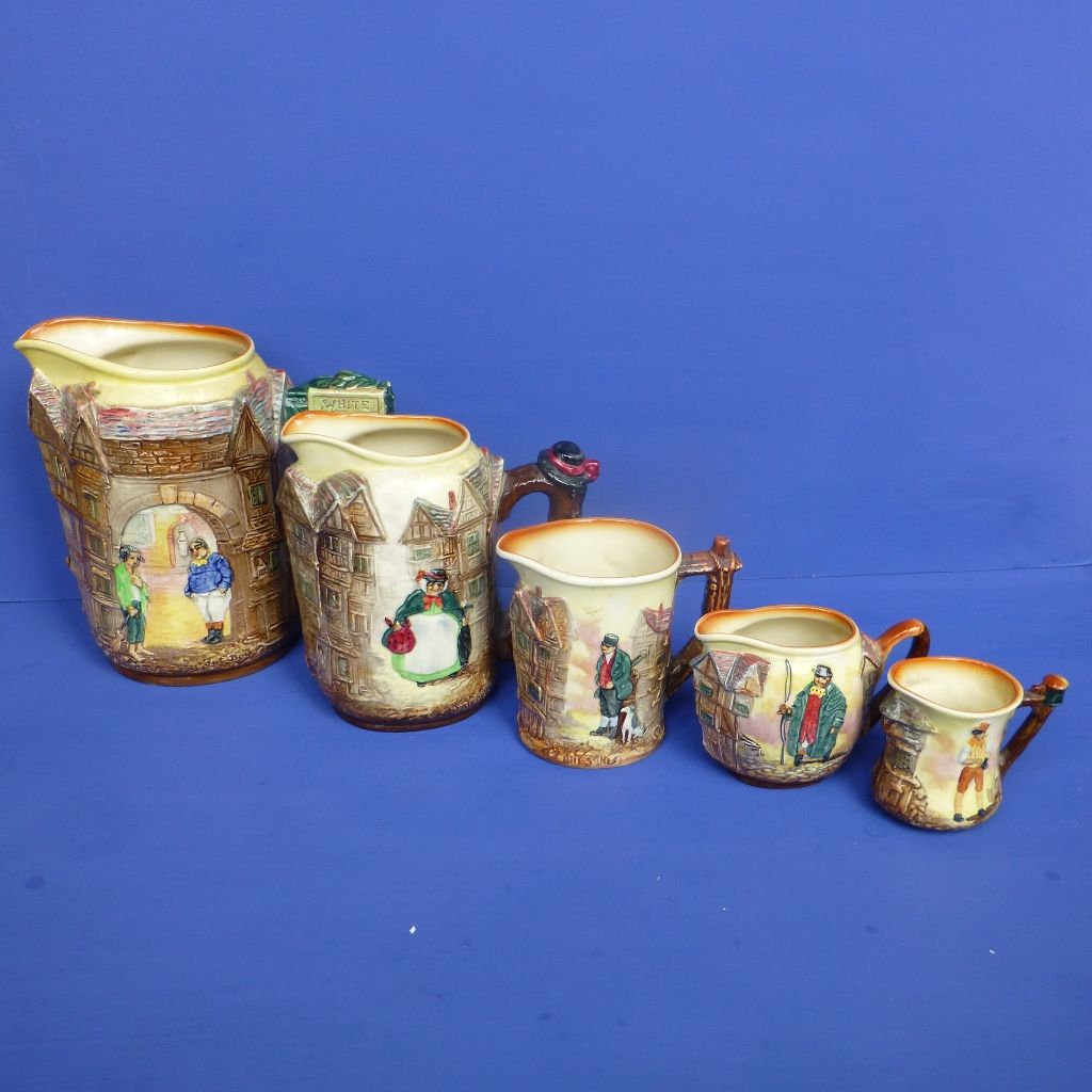 Royal Doulton Charles Dickens Series Ware Set of Relief Jugs C1953